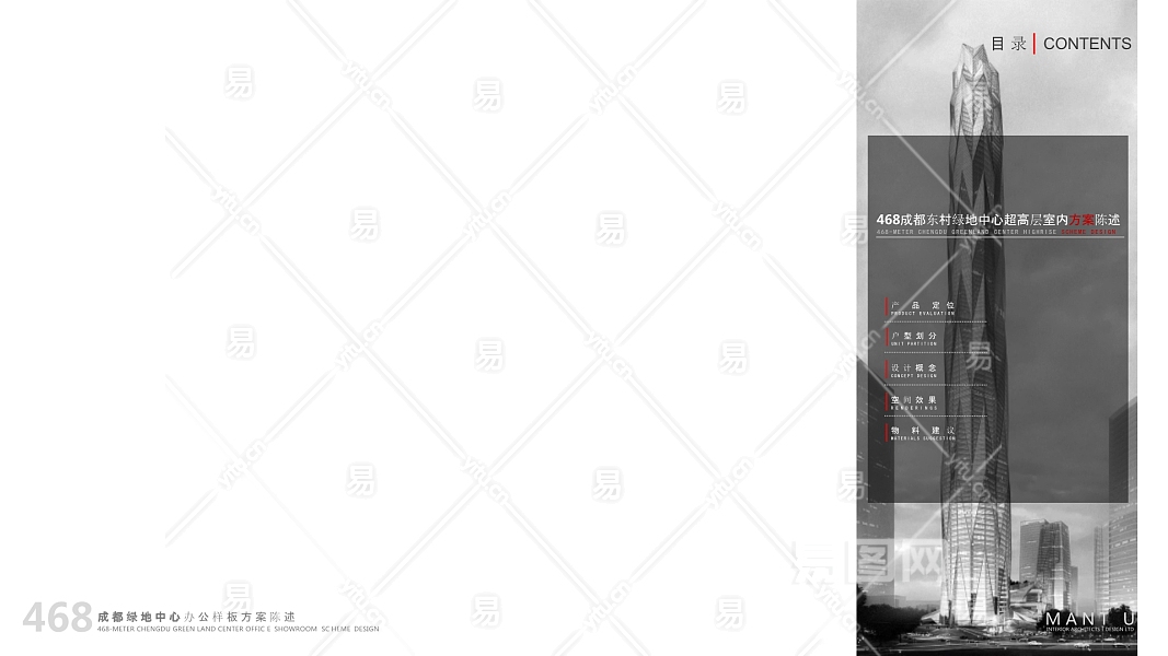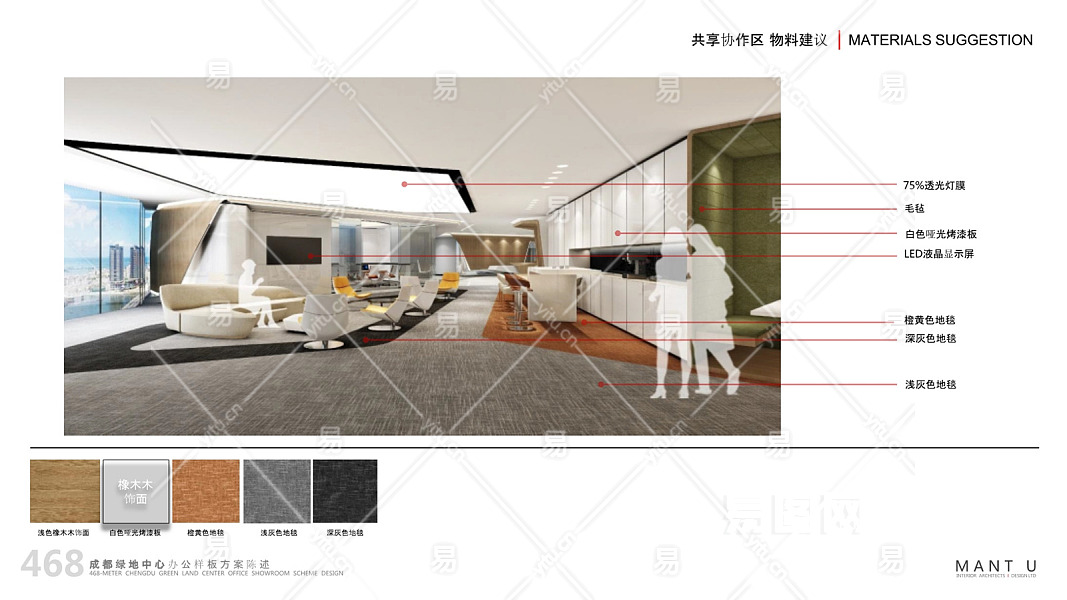 当前的位置:首页 > 文本 > 硬装方案文本 > 办公空间 > 成都绿地中心10F办公样板PPT硬装方案