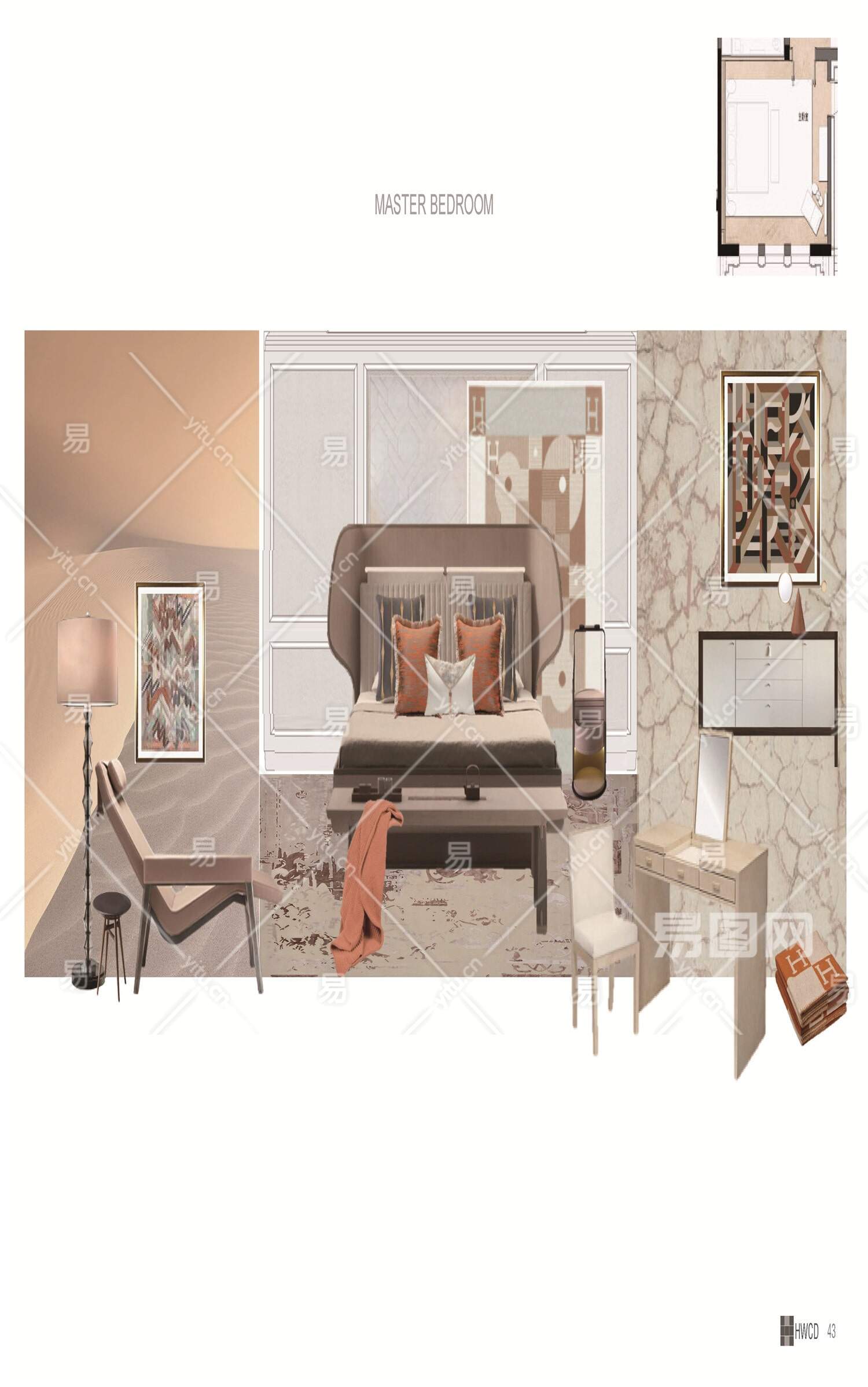 当前的位置:首页 > 文本 > 软装方案 > 住宅软装 > 上海东航爱马仕风格顶复样板间PPT软装方案62页