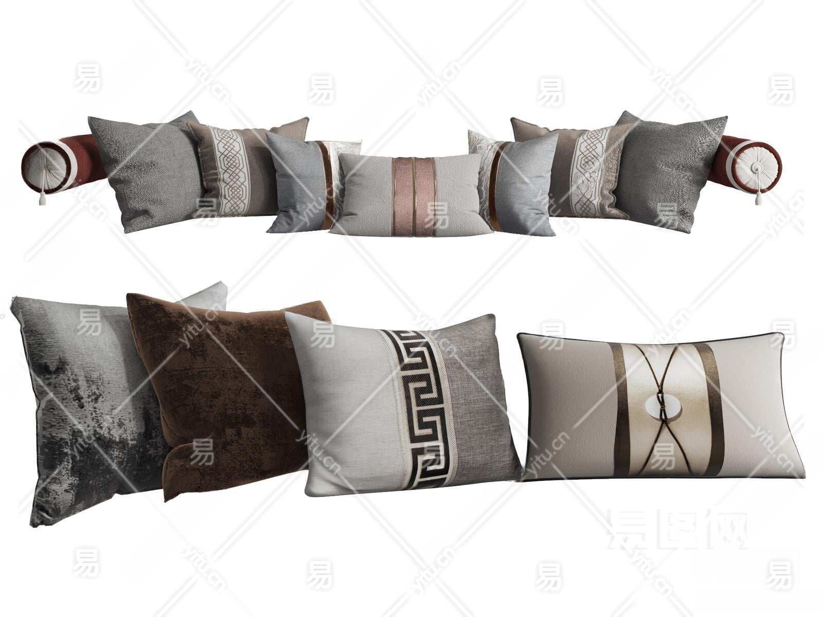 新中式抱枕3D模型下载