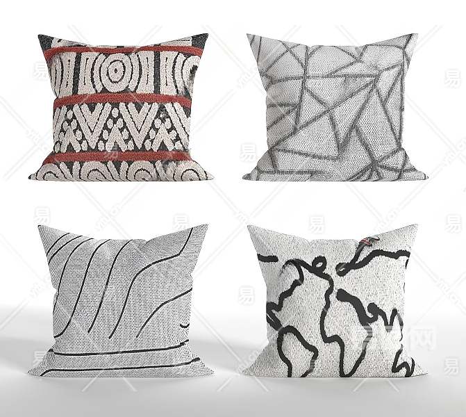 现代几何抱枕3D模型下载
