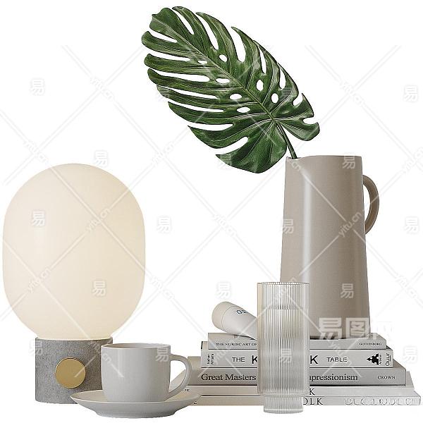 现代饰品摆件组合 台灯 花瓶 咖啡杯 水杯 书籍