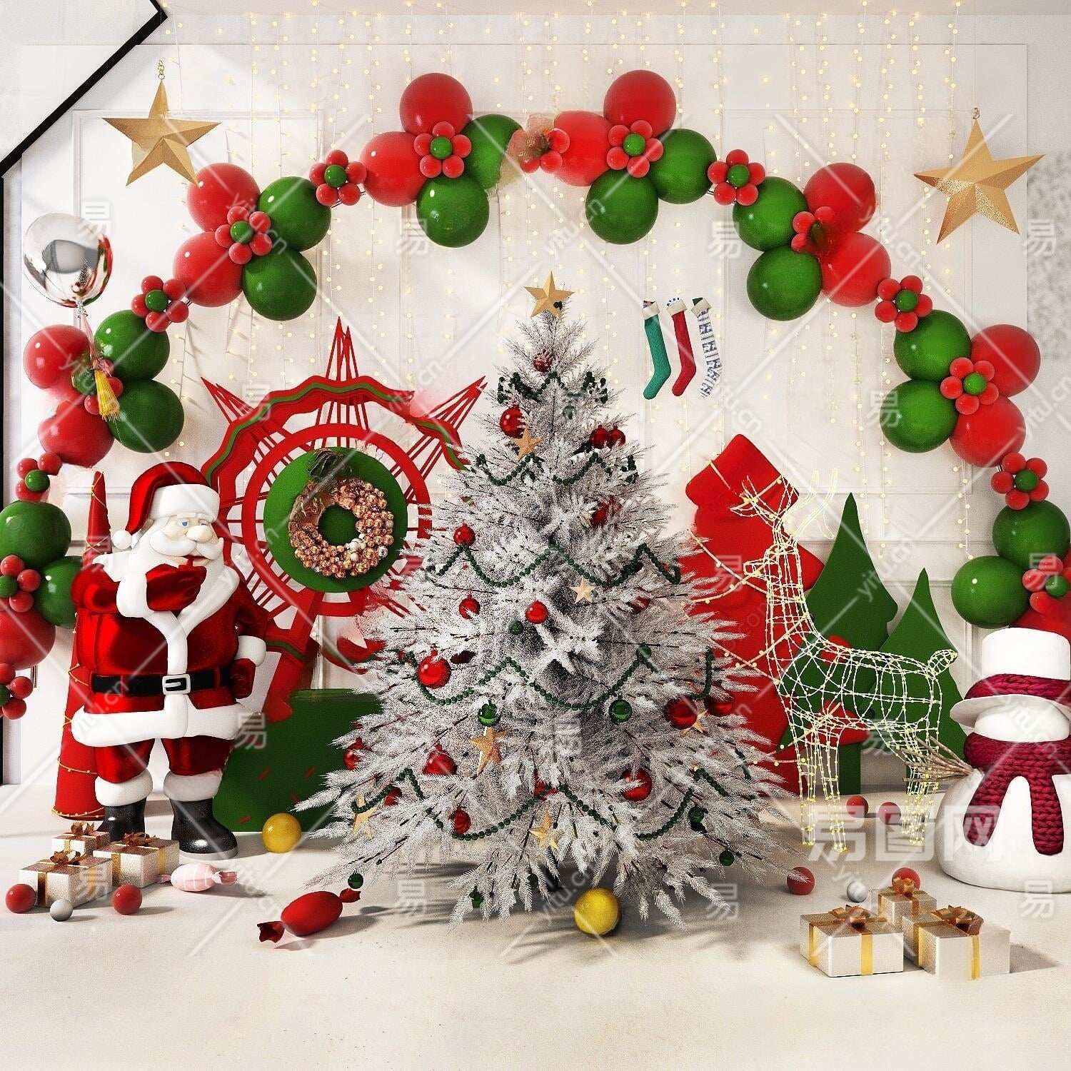 现代圣诞节日软装摆件3D模型下载