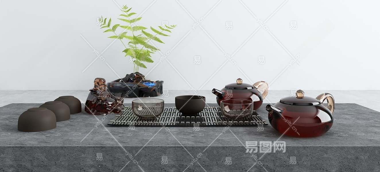 现代茶具3D模型下载