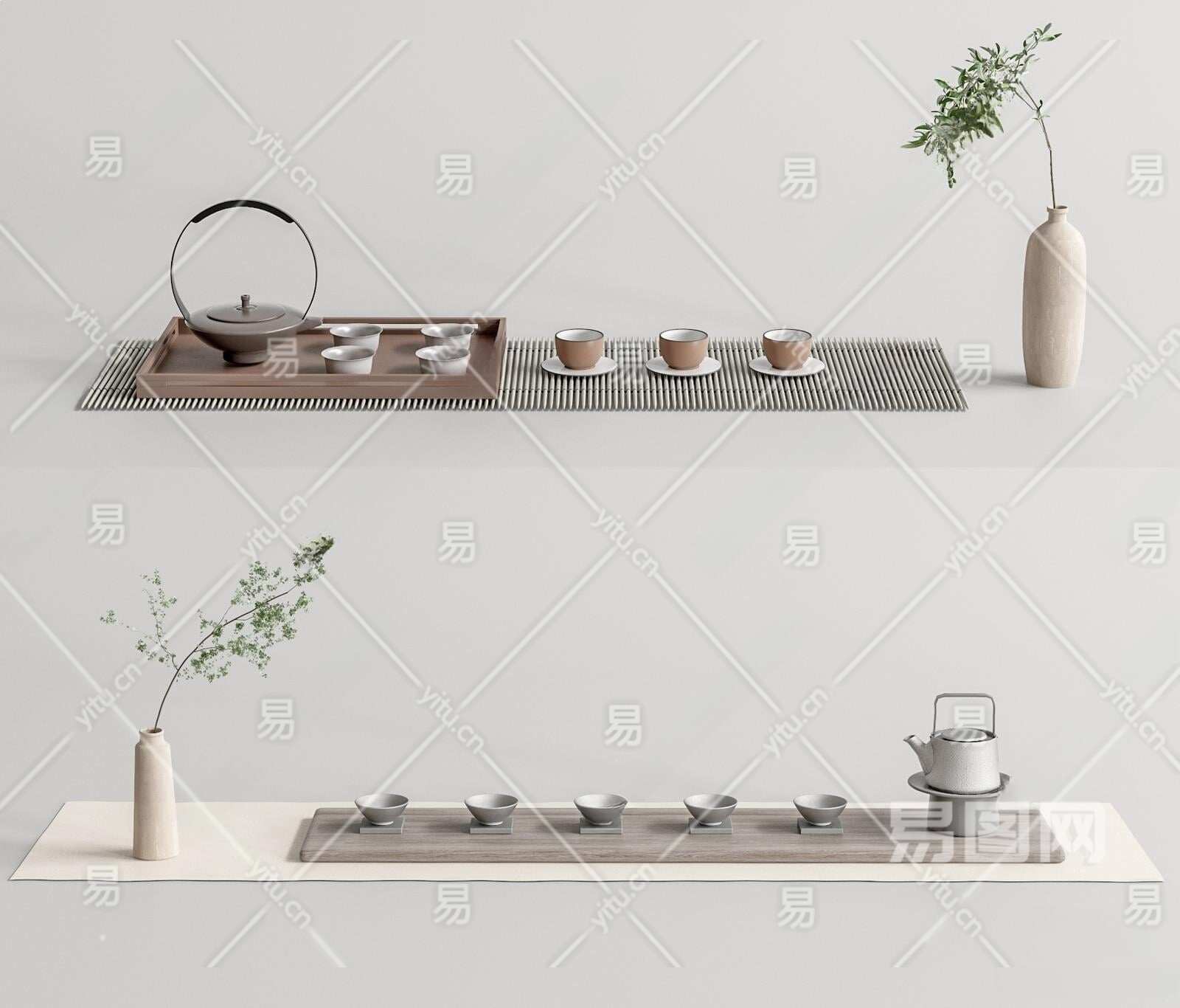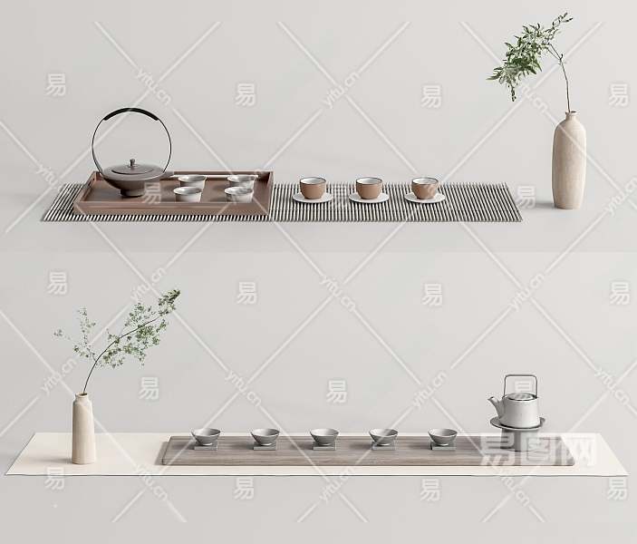 新中式茶具3D模型下载