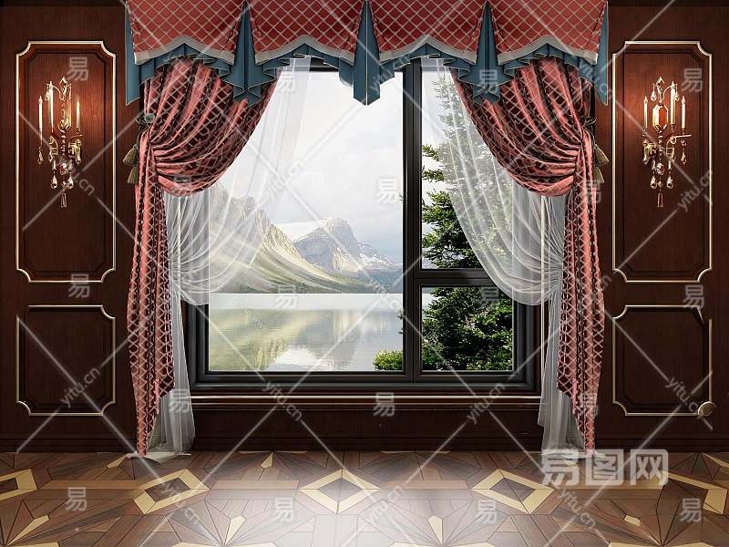 欧式古典窗帘3D模型下载
