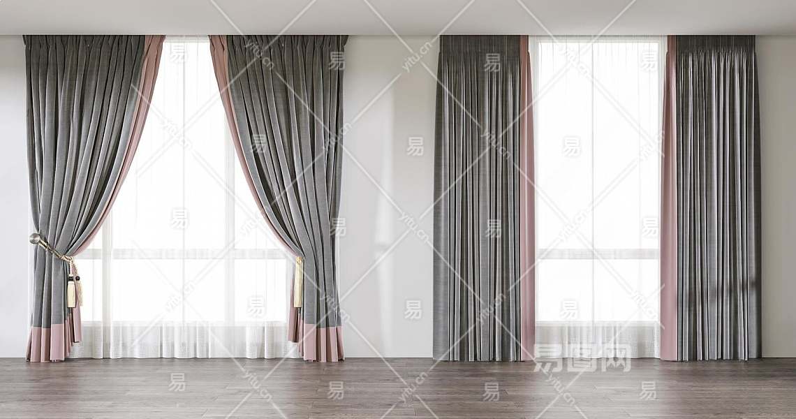 现代窗帘3D模型下载