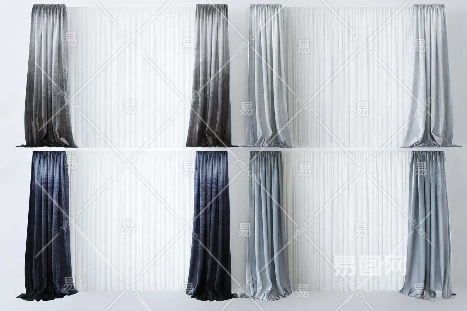 现代窗帘3D模型下载