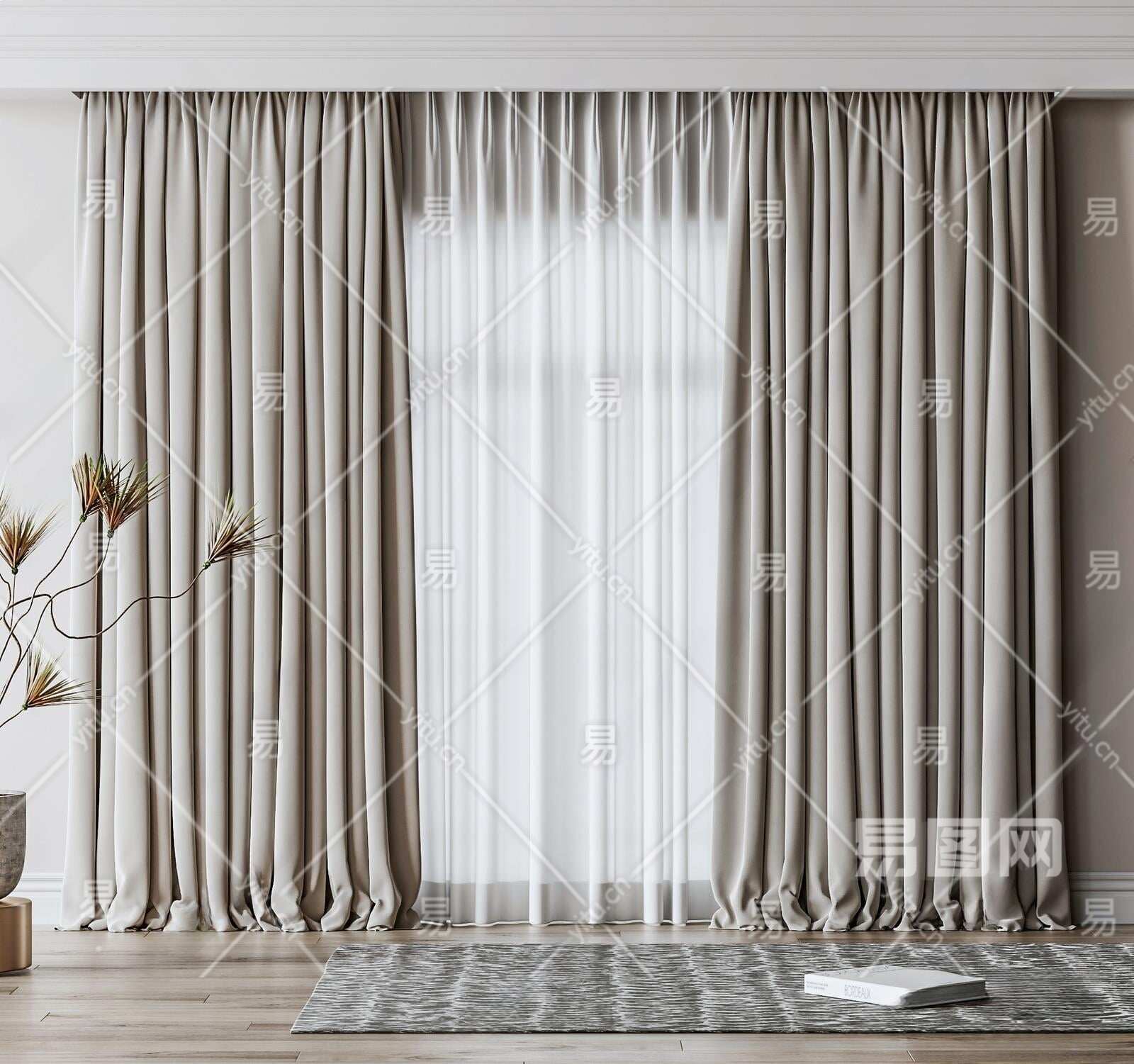 现代窗帘3D模型下载