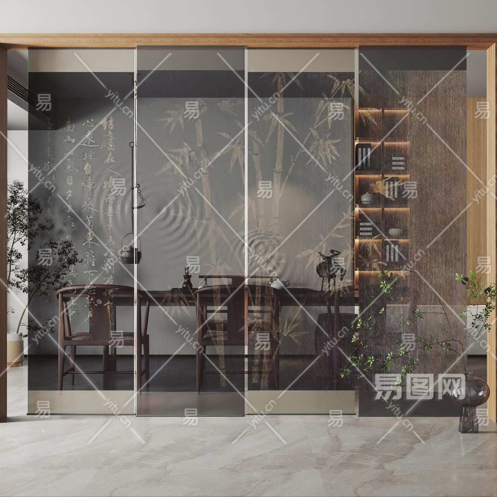 新中式门帘3D模型下载