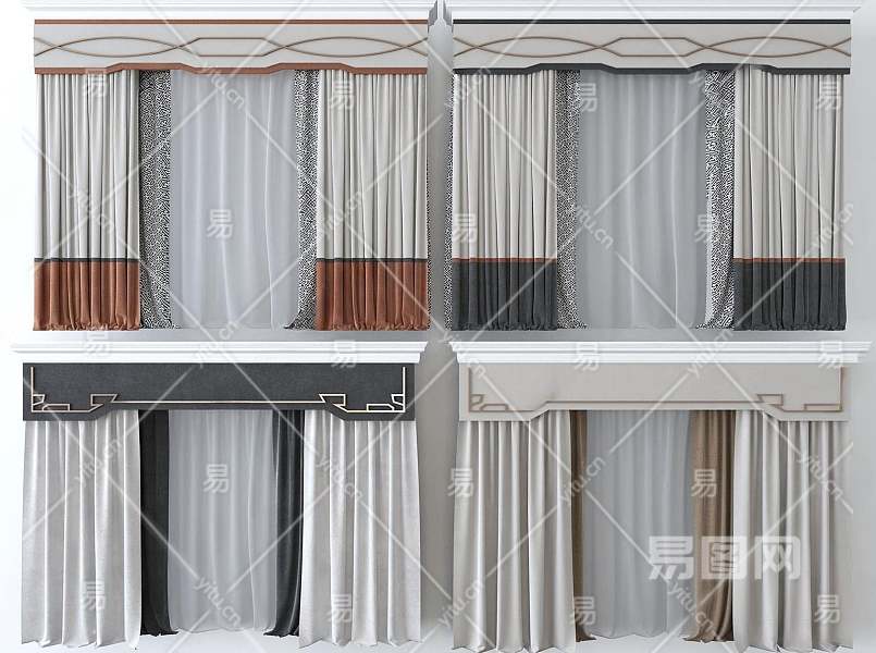 现代窗帘3D模型下载