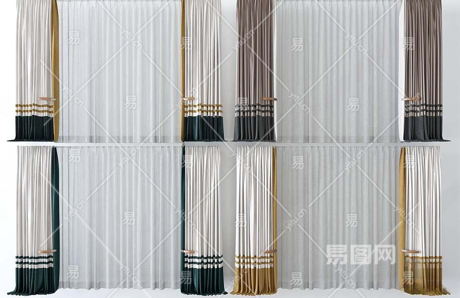 现代窗帘3D模型下载