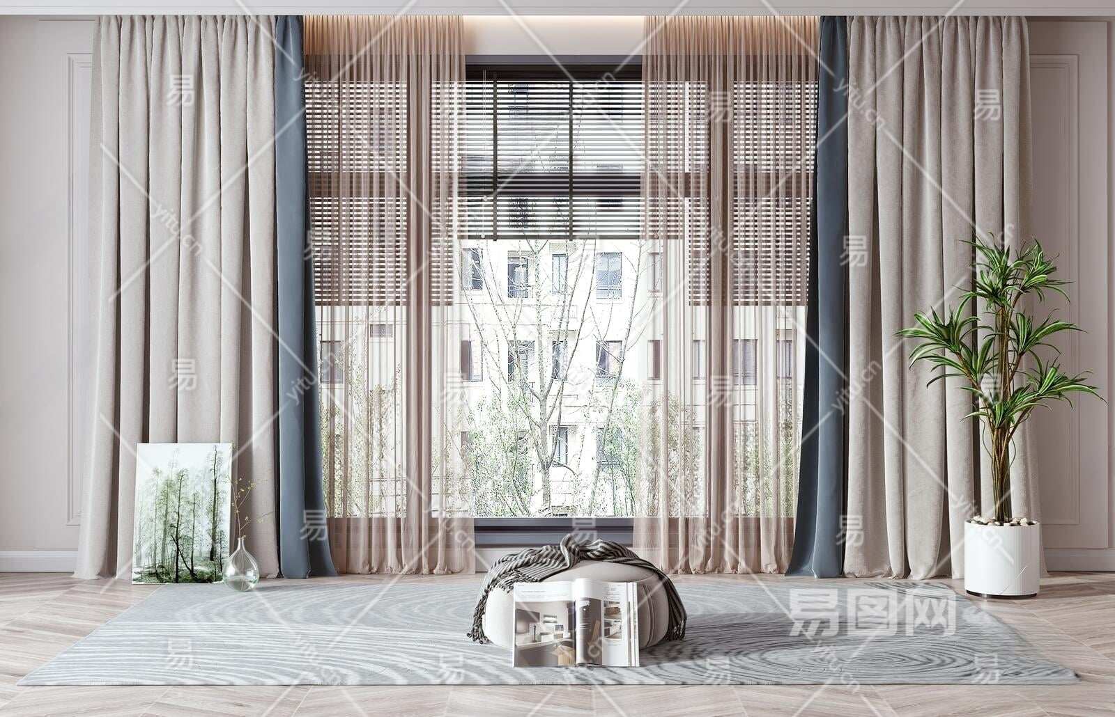 现代窗帘3D模型下载