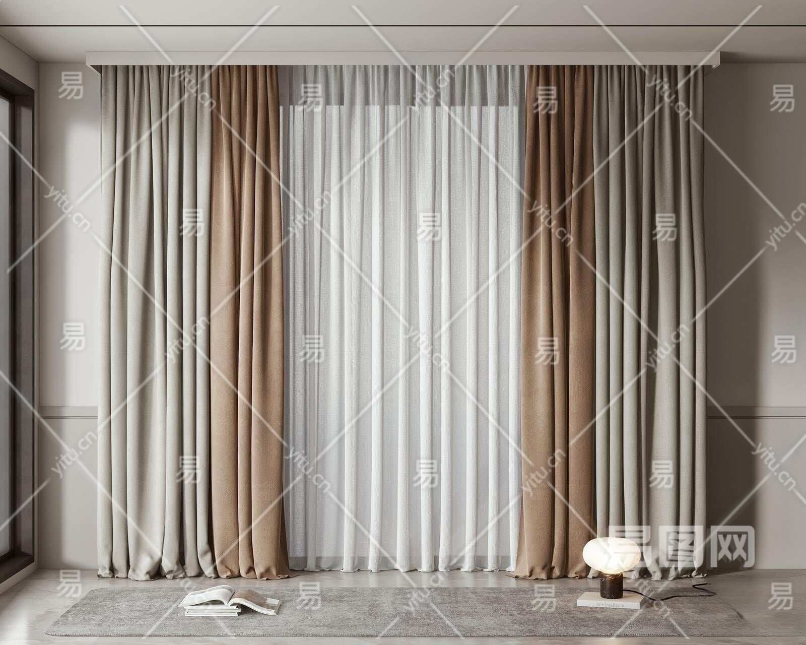 现代窗帘3D模型下载