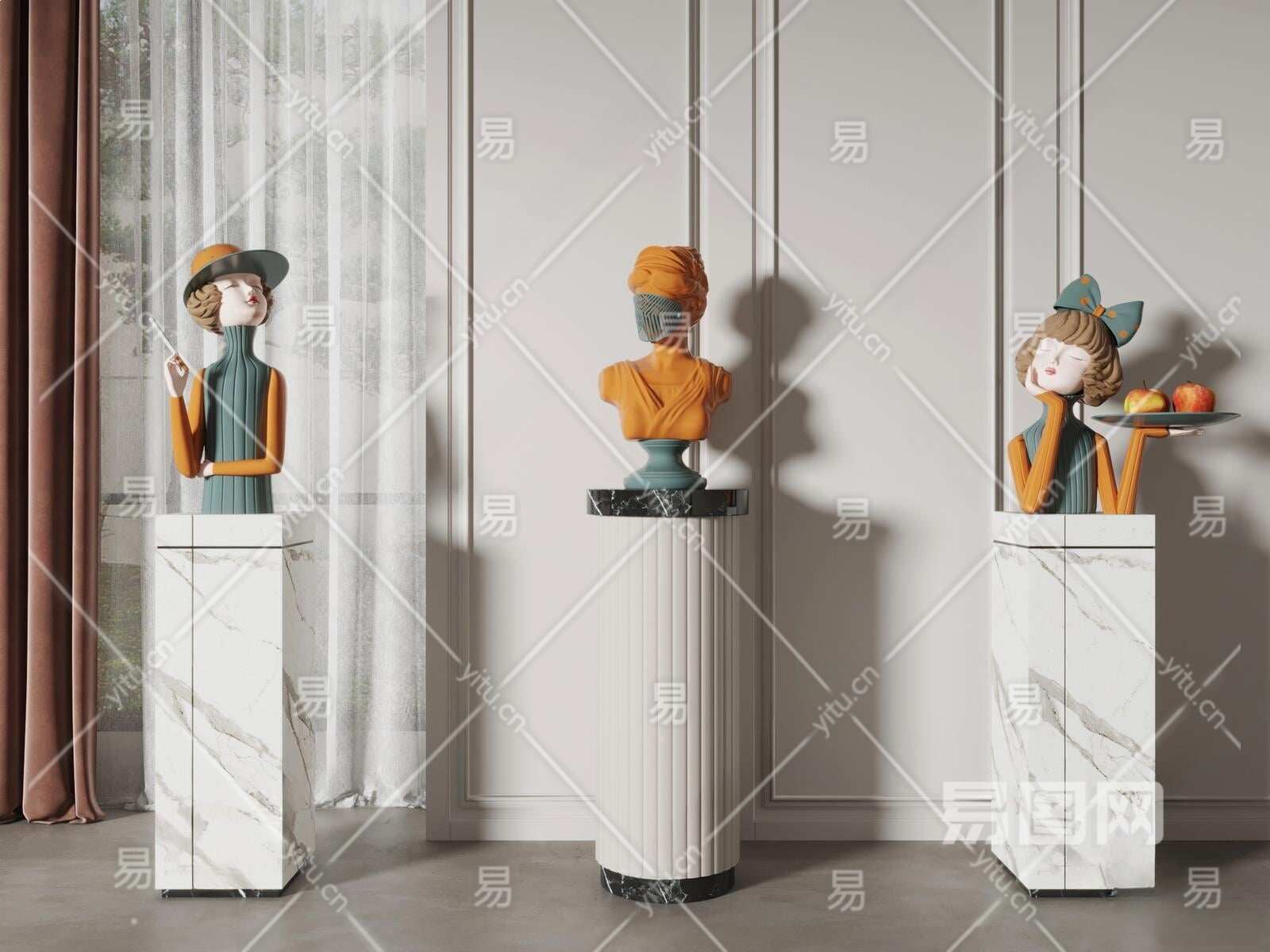 现代室内雕塑装置3D模型下载
