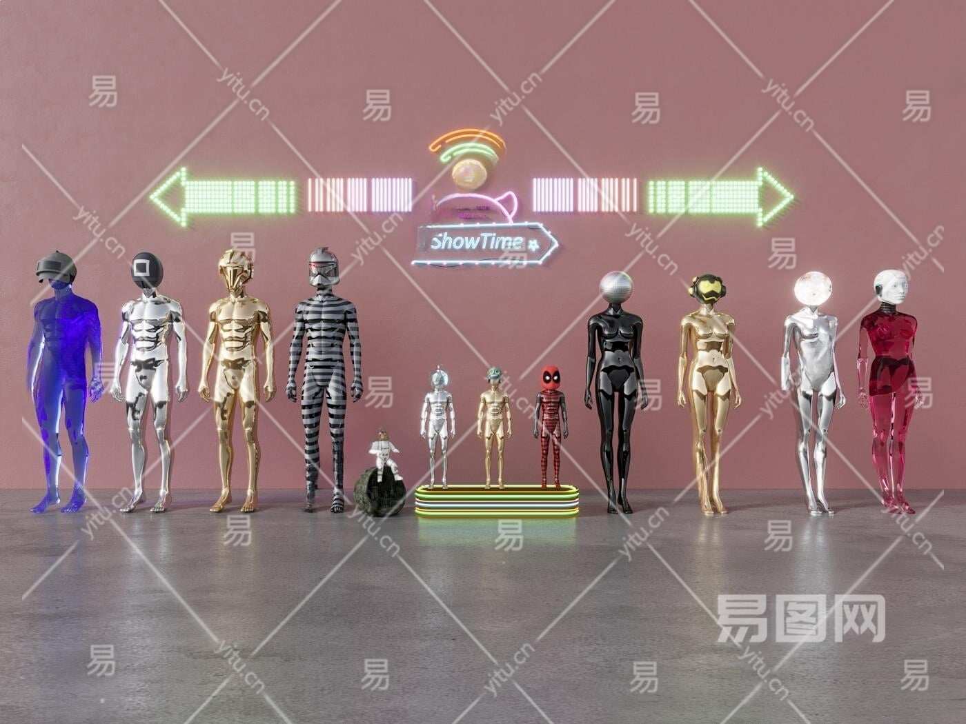 现代人物雕塑装置3D模型下载