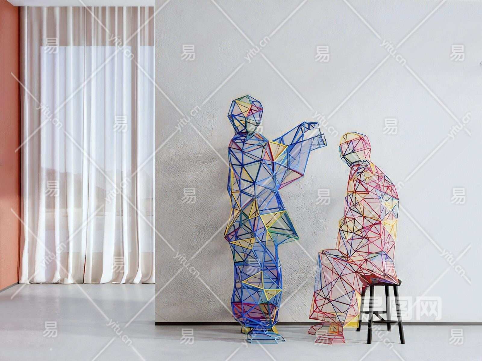 现代抽象人物艺术雕塑3D模型下载