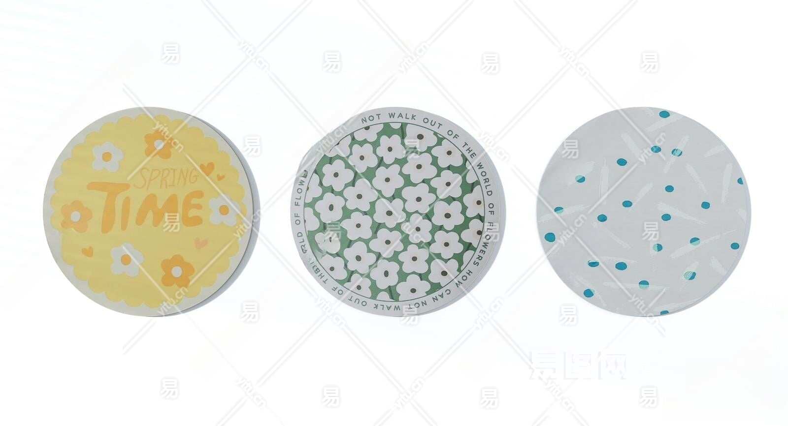现代黄绿蓝花朵圆形地毯组合3D模型下载