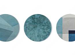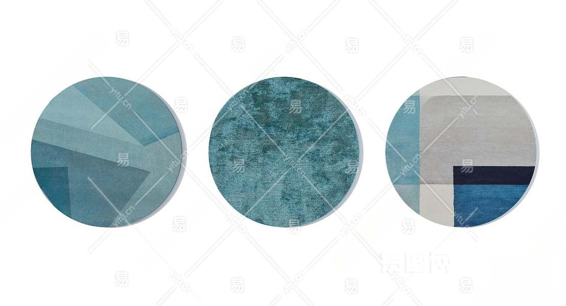 现代高级青蓝色几何圆形地毯组合3D模型下载