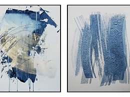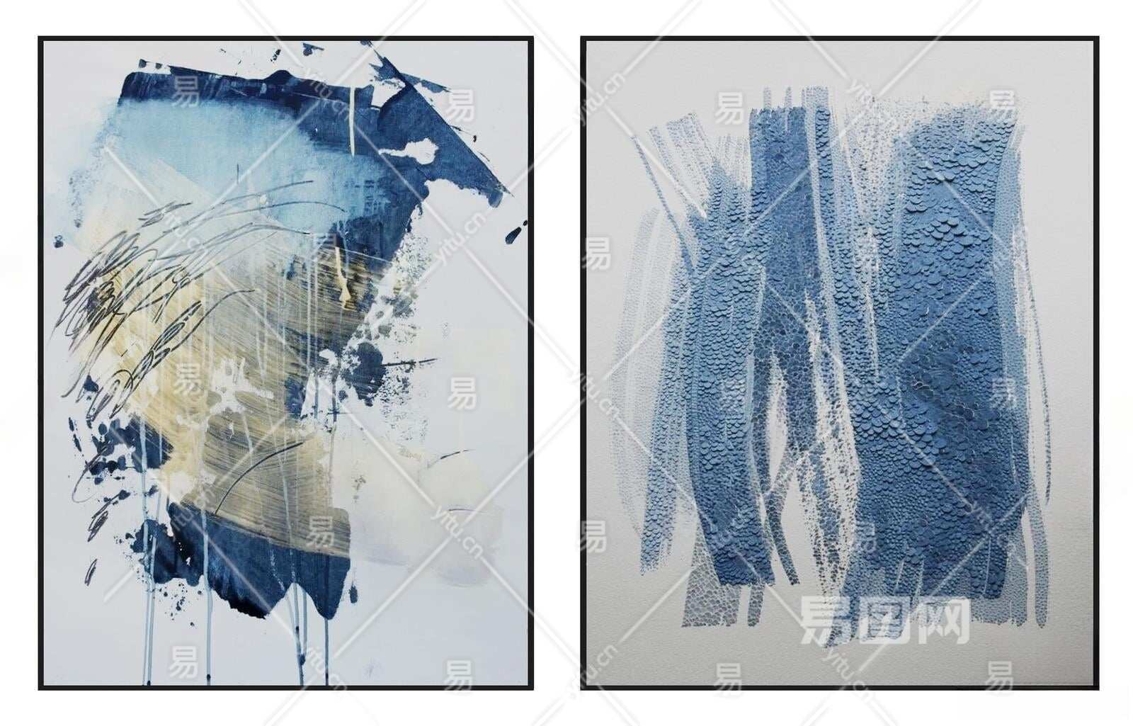现代灰蓝色抽象图案挂画组合3D模型下载