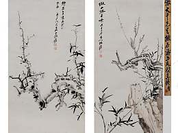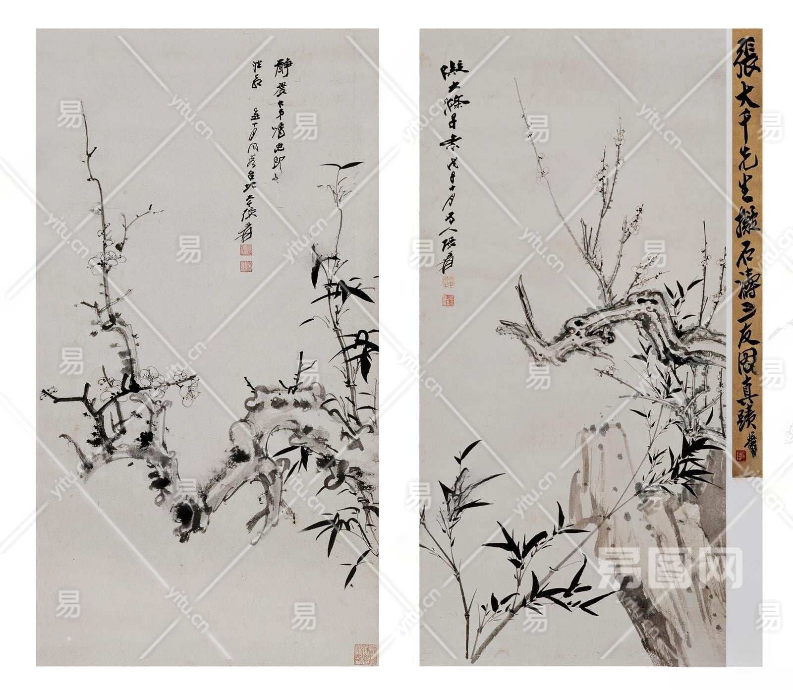 新中式水墨梅花竹子双拼挂画组合3D模型下载
