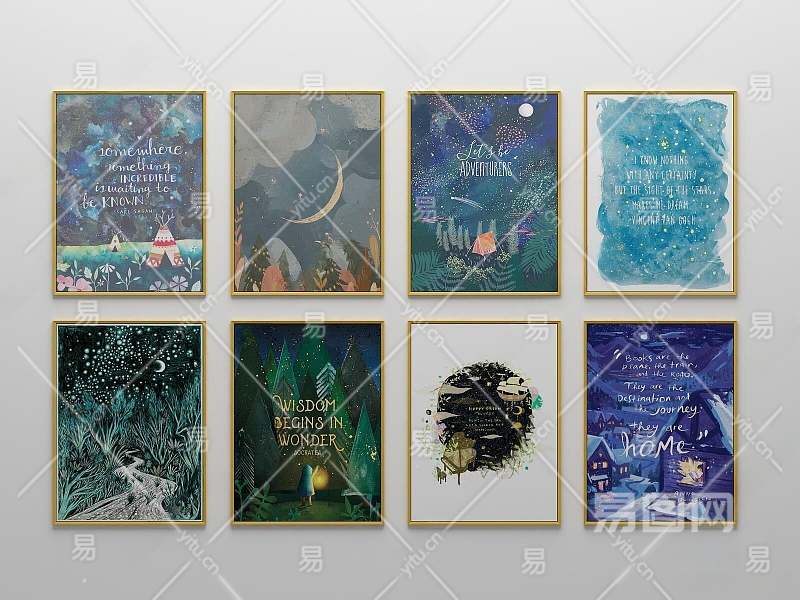 现代童话绘画装饰挂画3D模型下载
