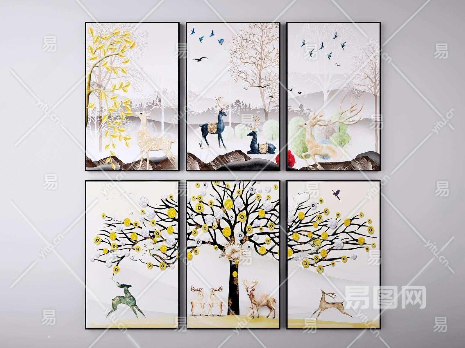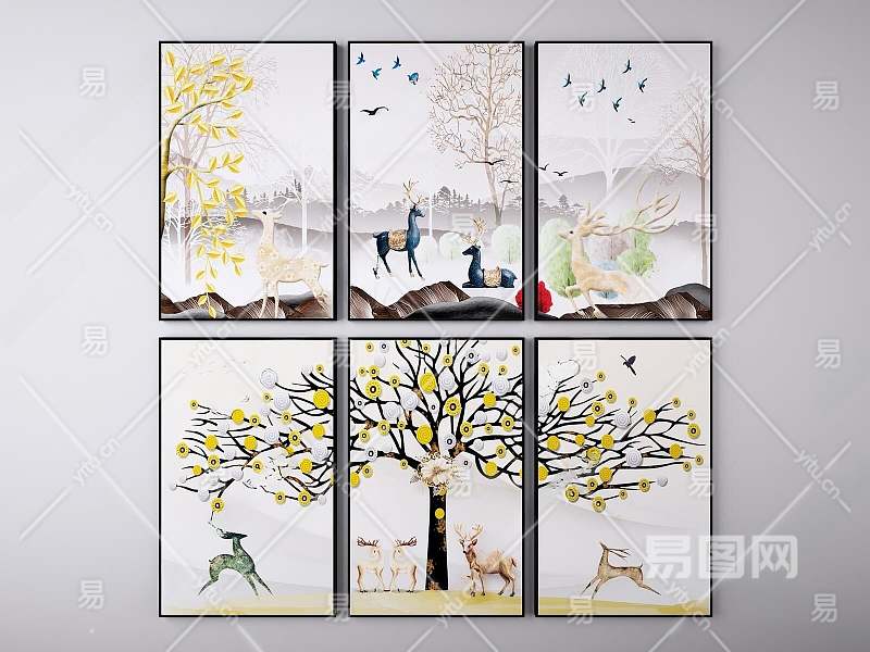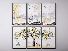 现代麋鹿装饰挂画组合3D模型下载
