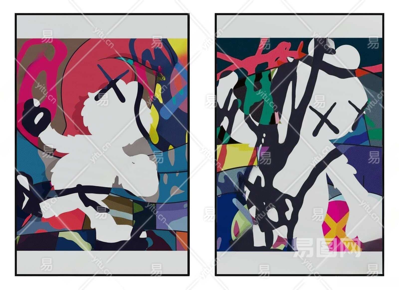 现代彩色抽象图案挂画组合3D模型下载
