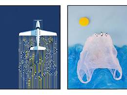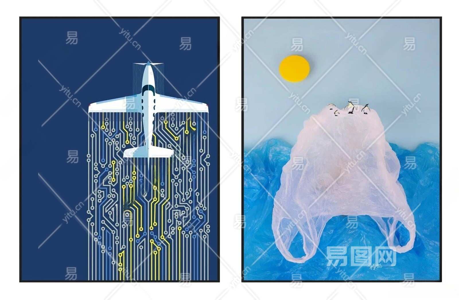 现代黄蓝色飞机企鹅图案儿童挂画组合3D模型下载