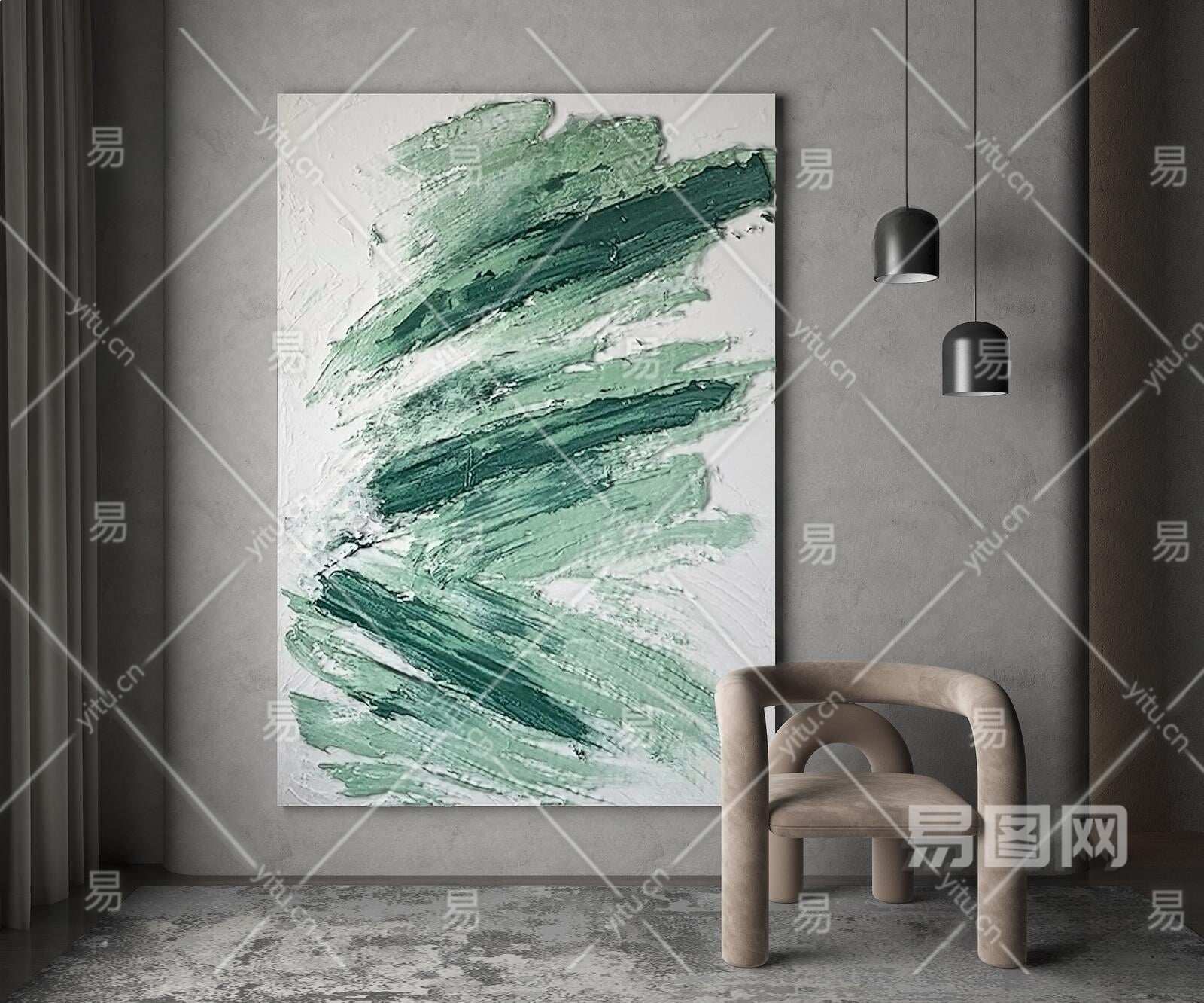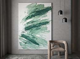 现代绿色笔触手绘肌理装饰画3D模型下载