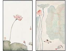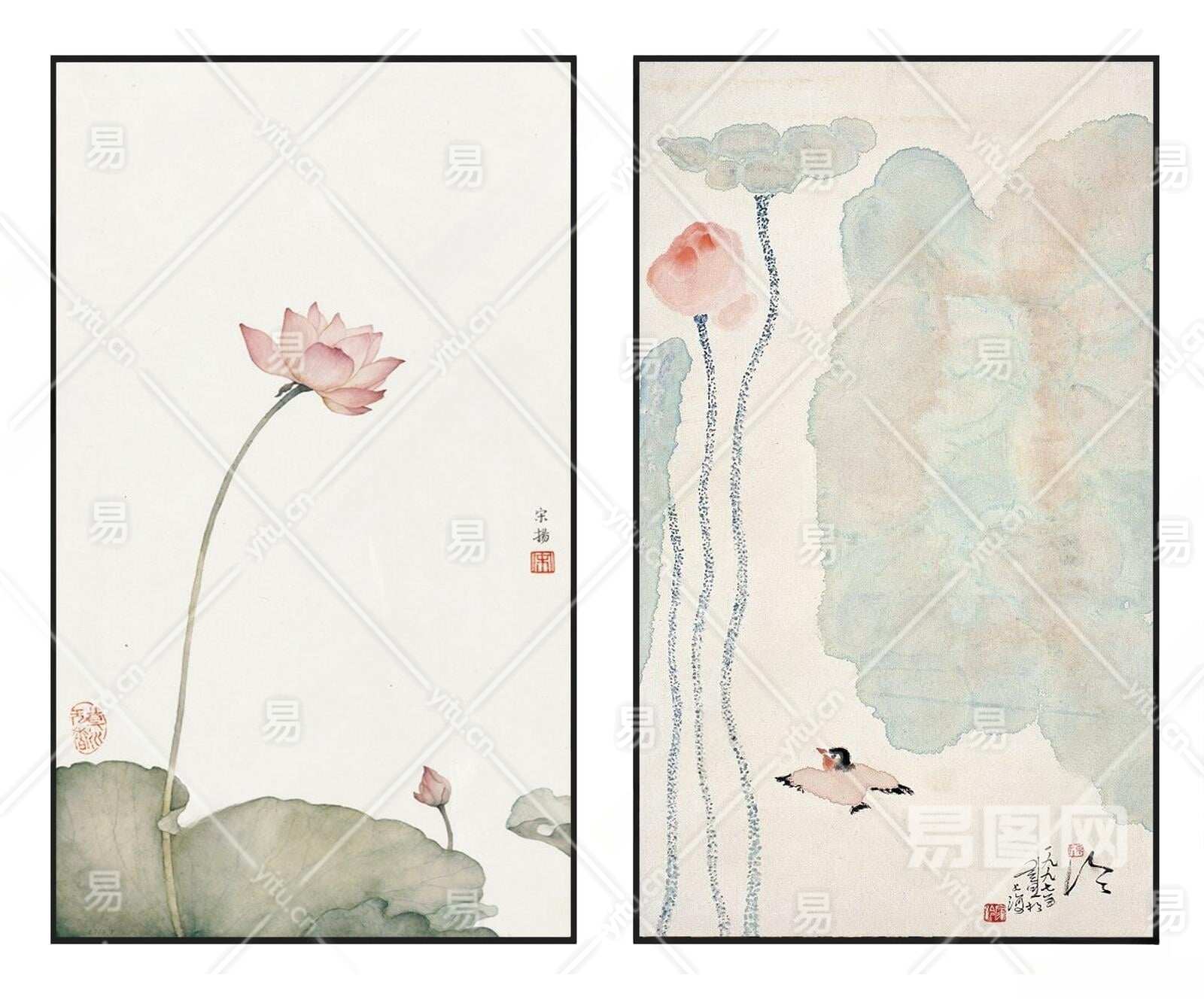 新中式清雅禅意荷花图案挂画组合3D模型下载