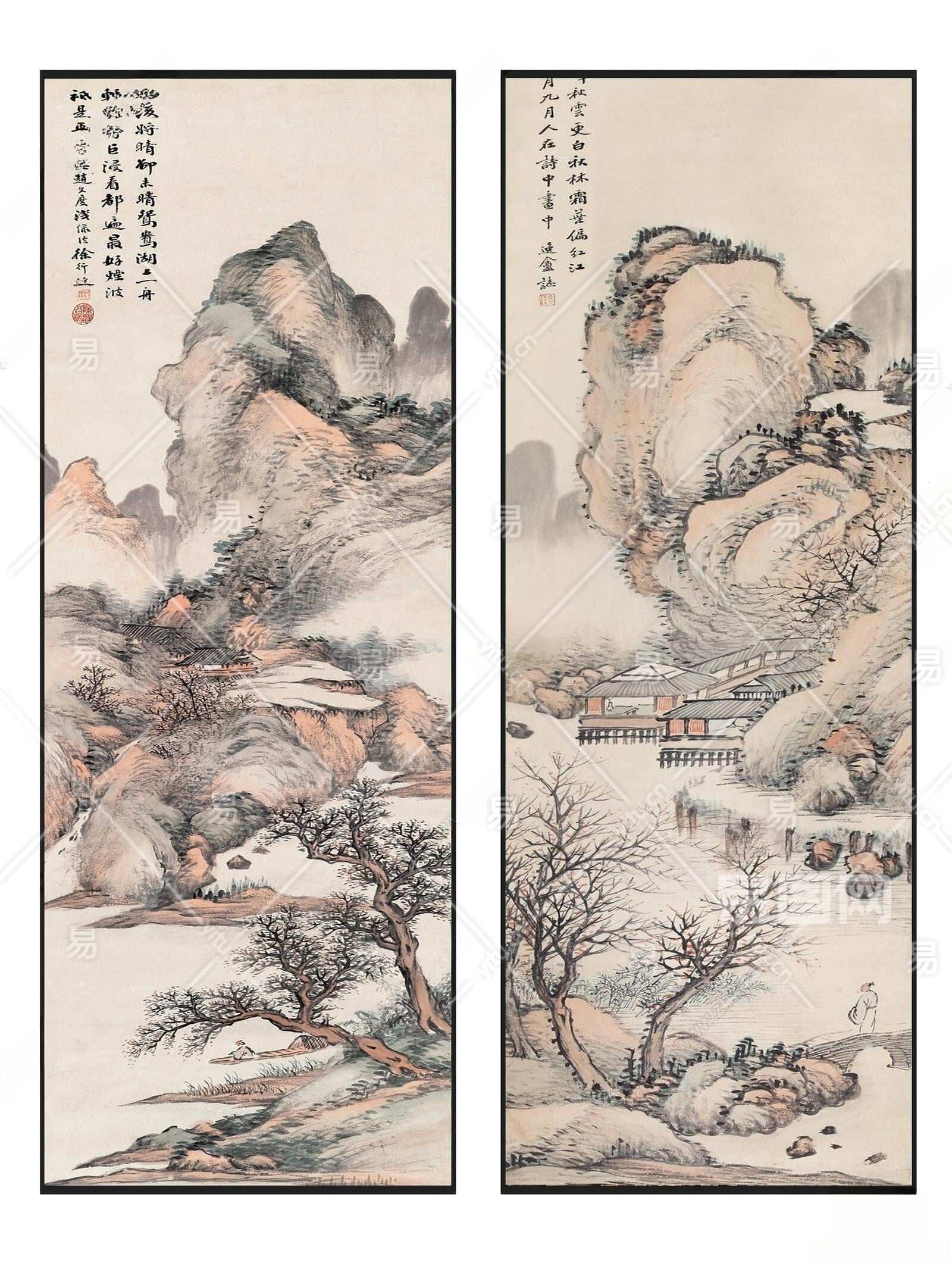 中式禅意意境山峰山水风景挂画组合3D模型下载