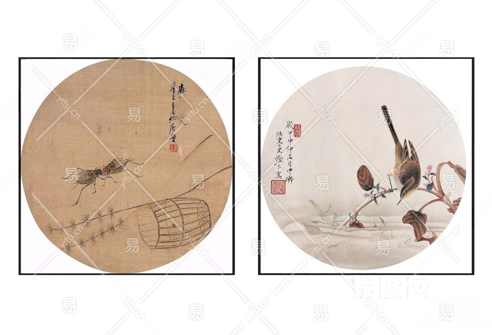 中式雅致禅意花鸟昆虫图案挂画组合3D模型下载