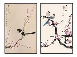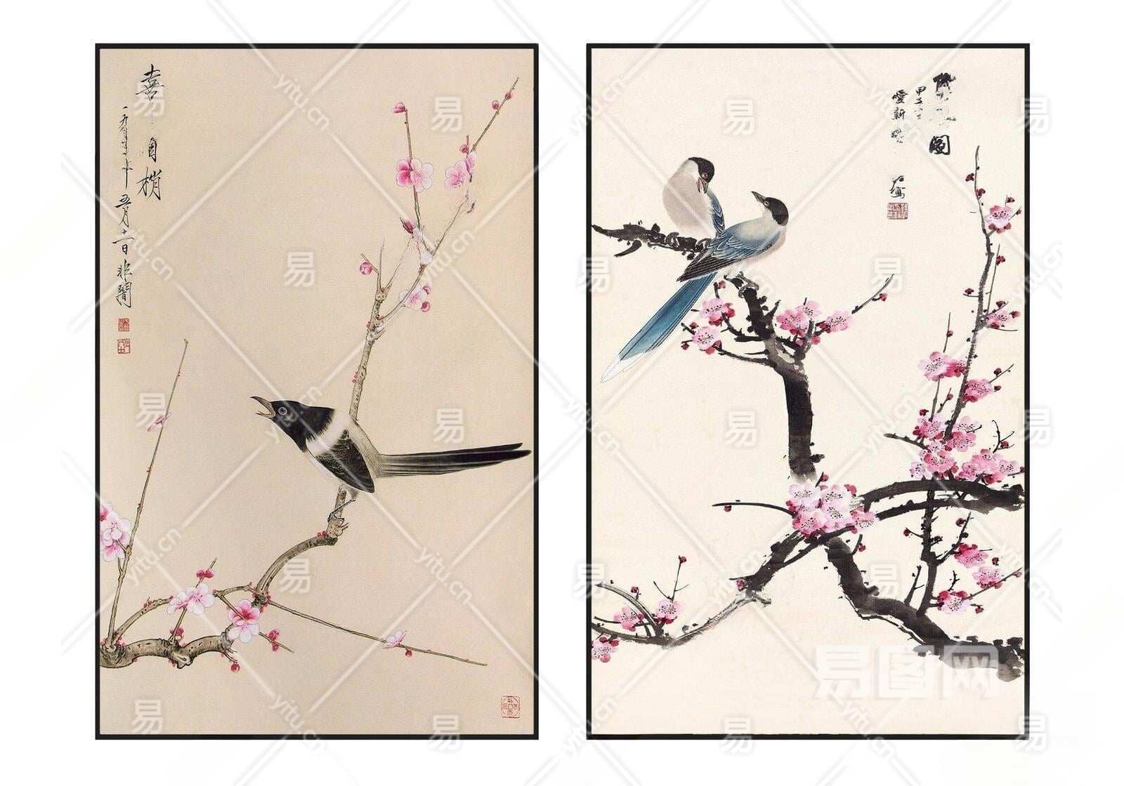 中式清雅禅意花鸟图案挂画组合3D模型下载