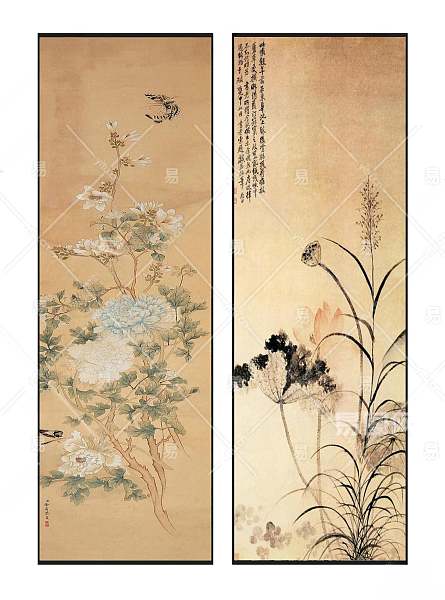 中式禅意精致牡丹荷花图案挂画组合3D模型下载