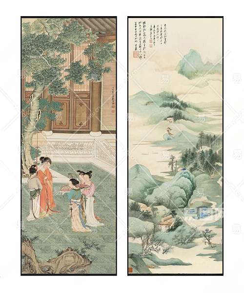 中式清雅意境人物场景山水风景挂画组合3D模型下载