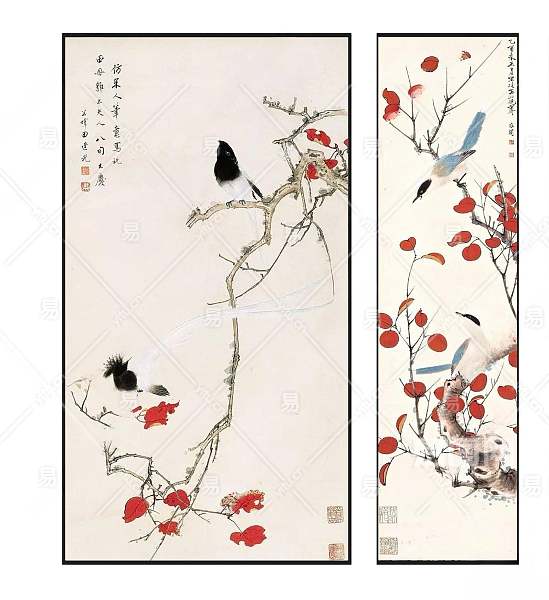 中式雅致禅意红叶飞鸟图案挂画组合3D模型下载