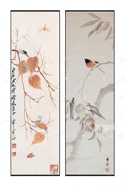 新中式清雅禅意植物飞鸟图案挂画组合3D模型下载