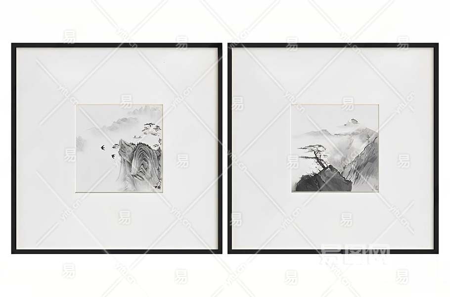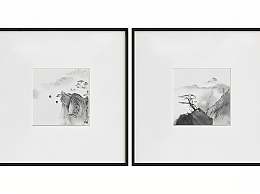新中式禅意淡雅黑白山水装饰画3D模型下载
