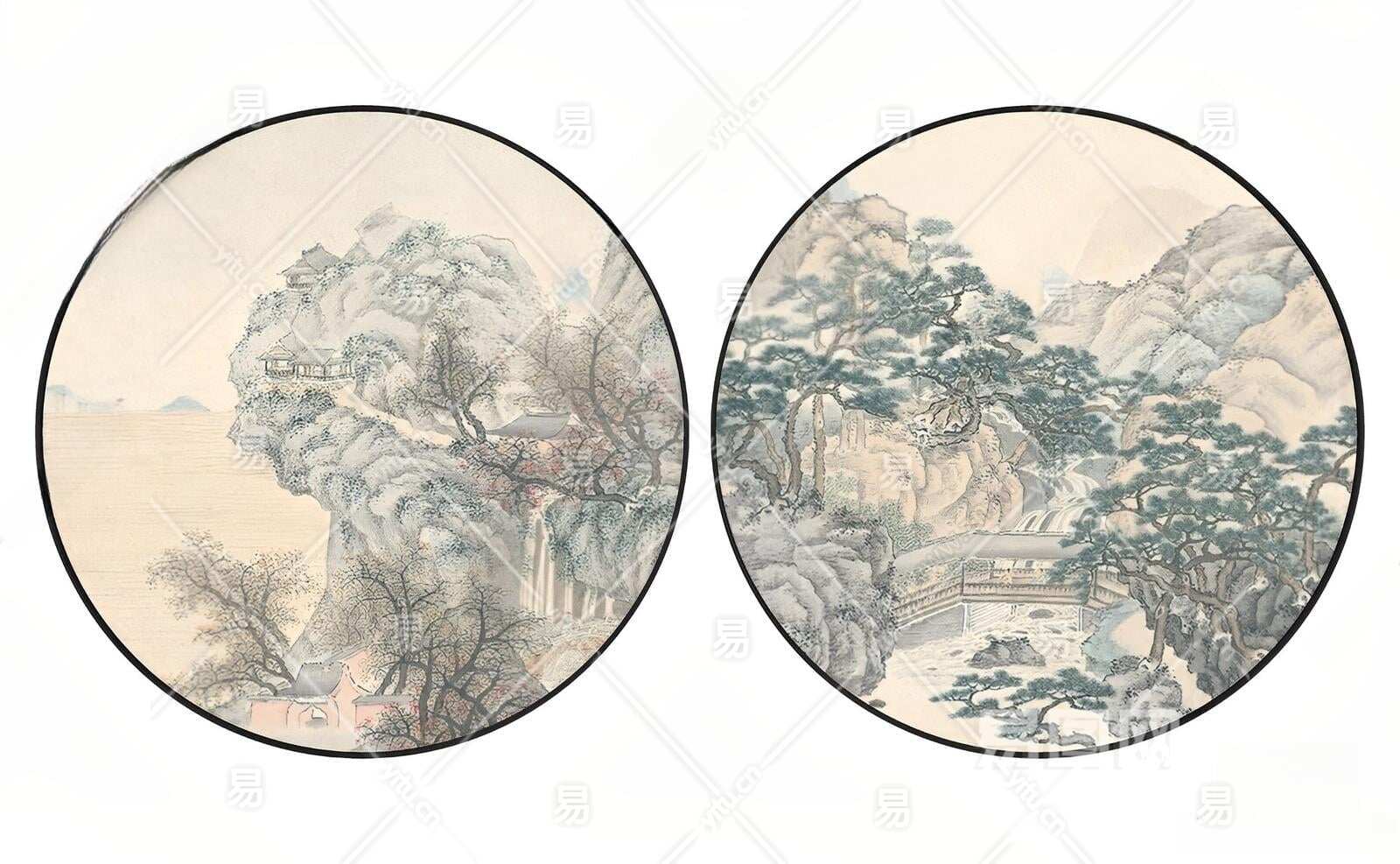 新中式禅意典雅圆形山水装饰挂画3D模型下载
