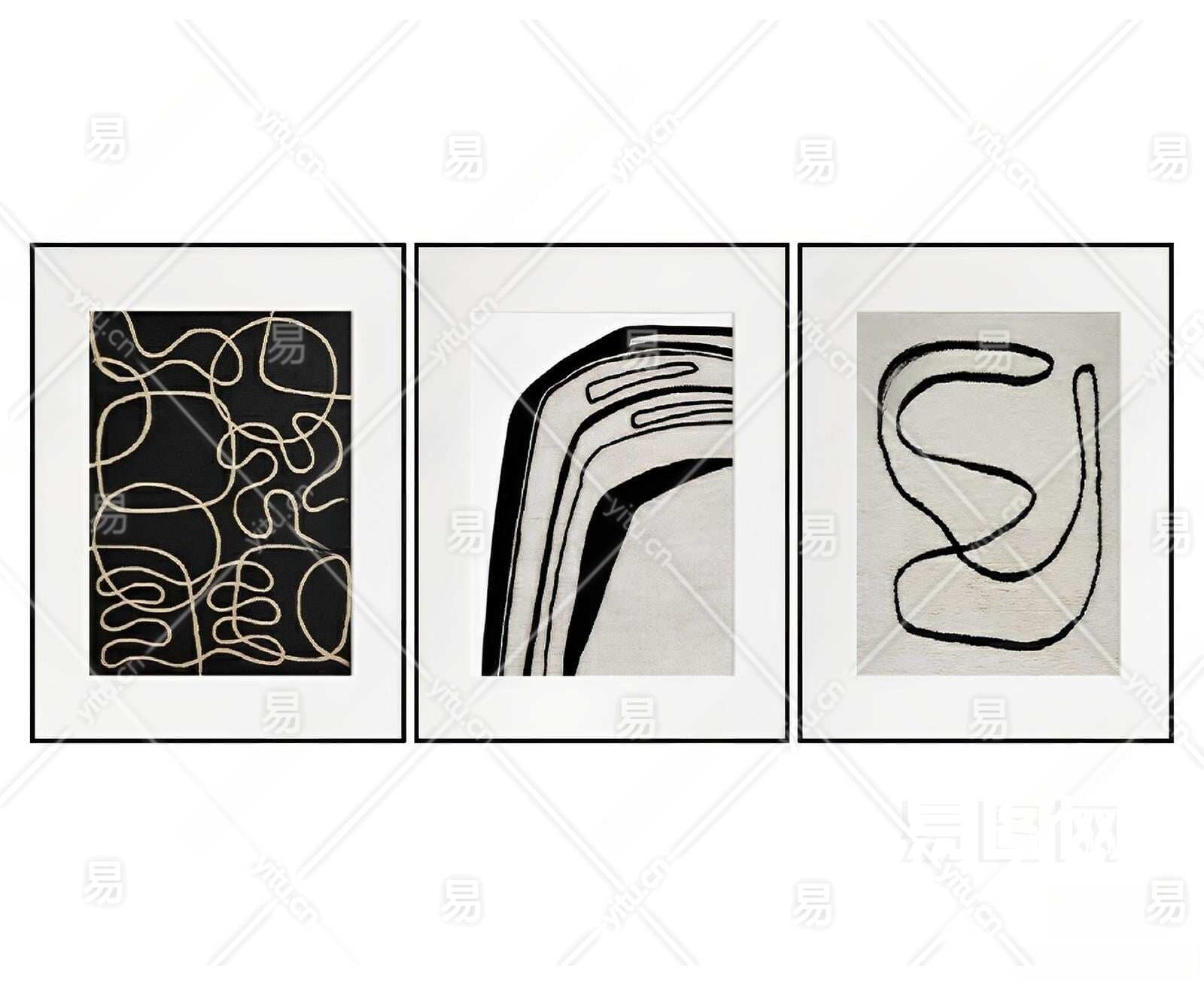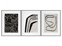 现代黑白装饰挂画3D模型下载