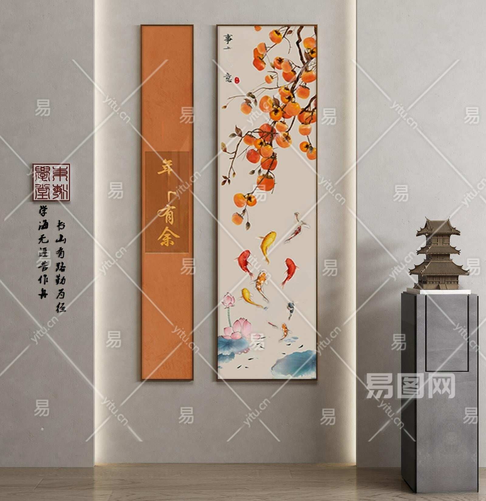 新中式竖版装饰画3D模型下载