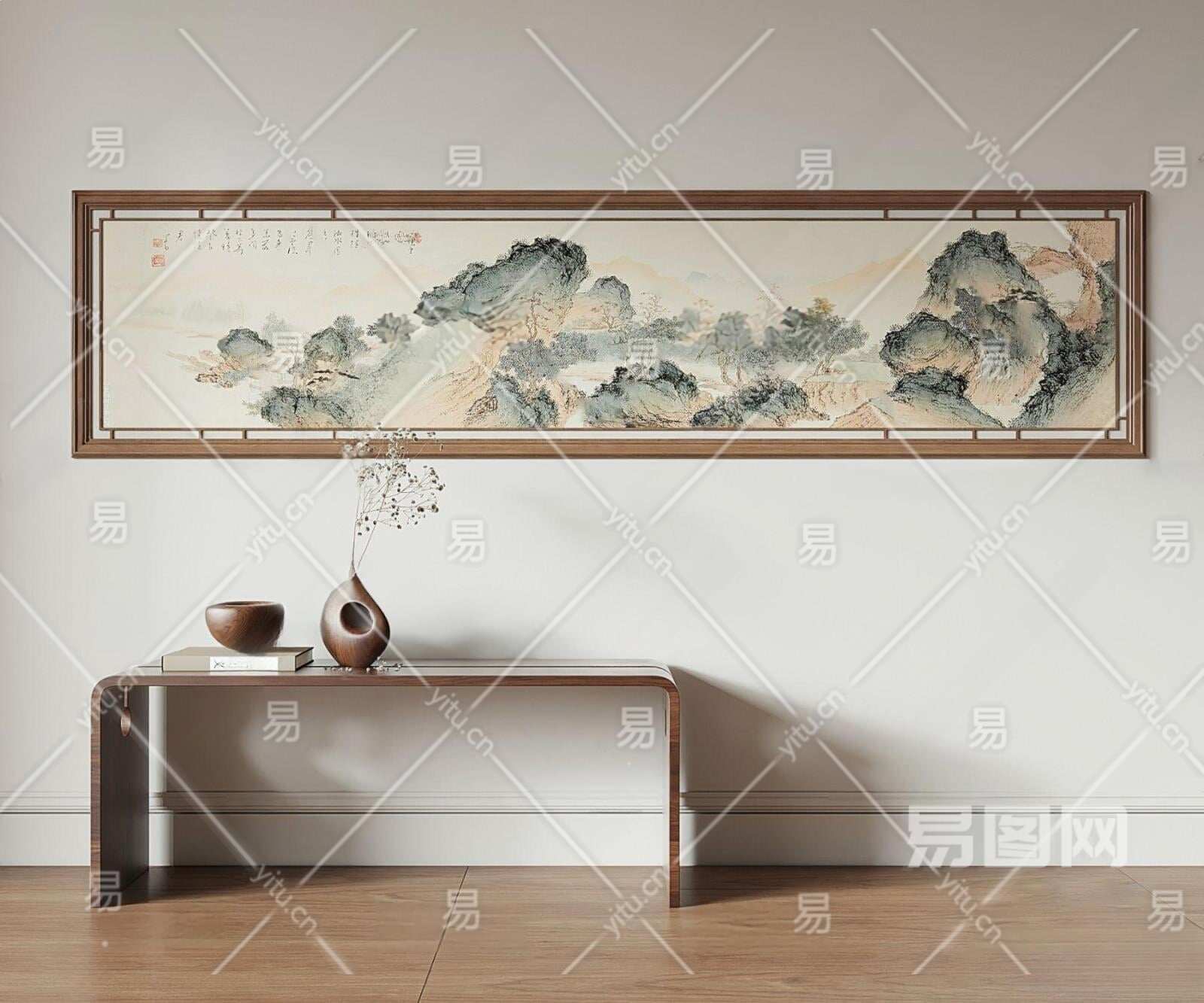 新中式山水装饰画3D模型下载