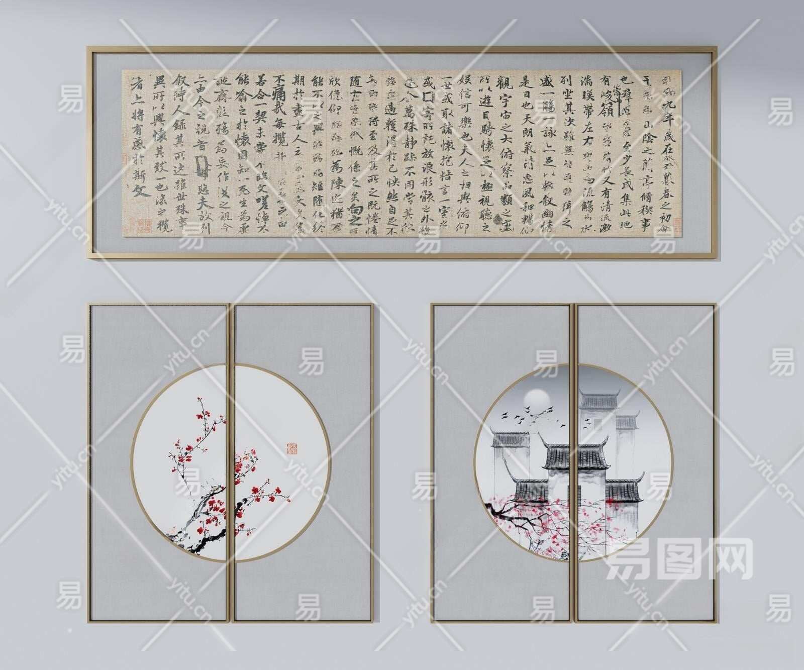 新中式装饰画3D模型下载