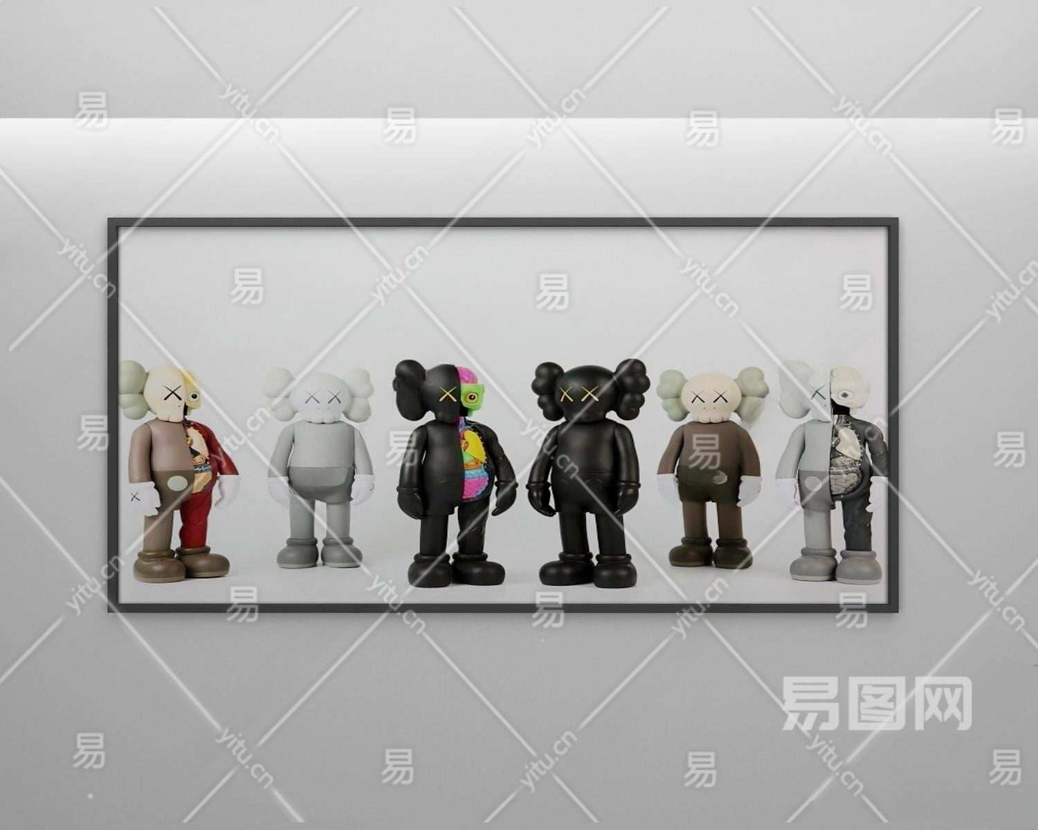 现代KAWS芝麻街暴力熊潮玩装饰画3D模型下载
