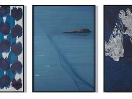 现代高级暗灰蓝色抽象挂画组合3D模型下载