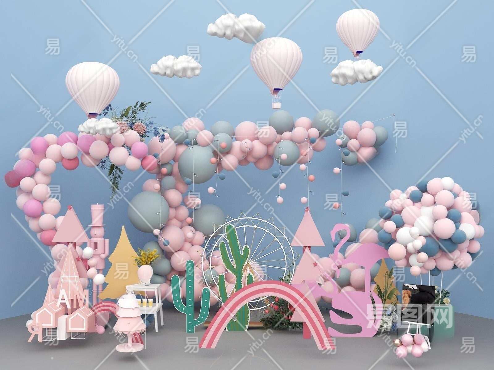 现代气球美陈3D模型下载