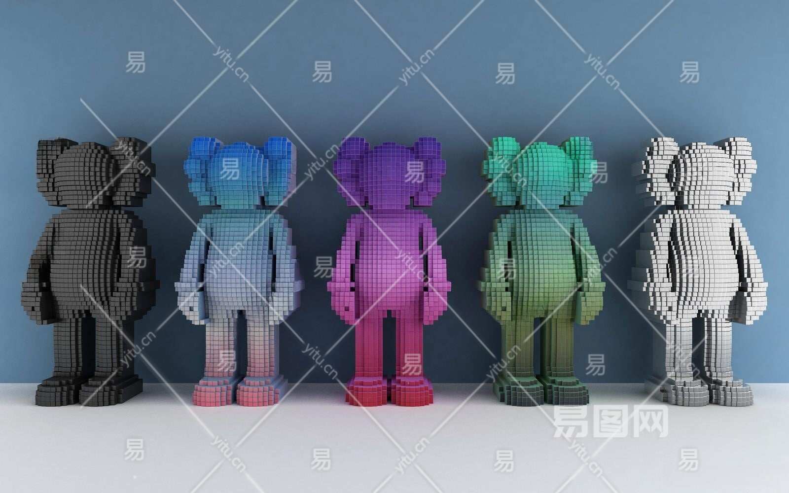 现代KAWS暴力熊潮玩公仔摆件组合3D模型下载