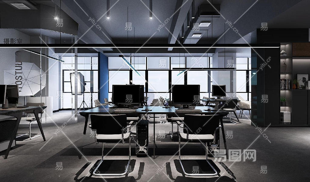 工业风前厅开放办公区3D模型下载