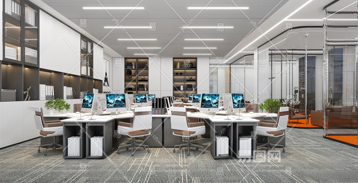 现代公共办公室3D模型下载