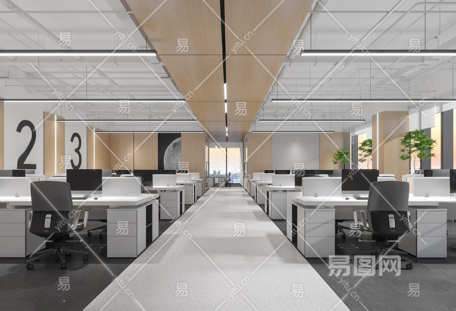 现代公共办公室3D模型下载